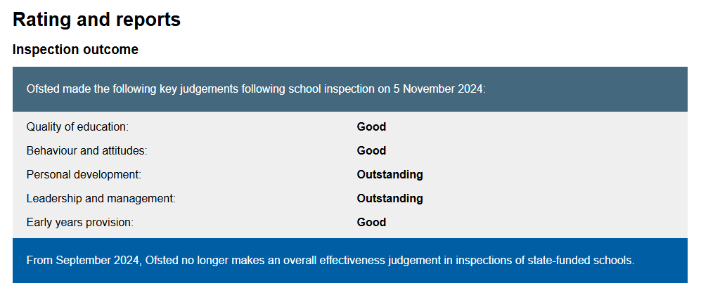There is no longer an overall judgement grade after an Ofsted inspection. However, Ofsted provide individual grades across five key areas.